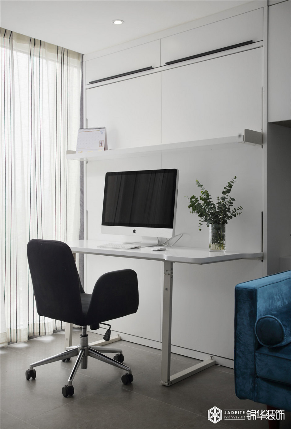 ▲陽臺制作了擱架書桌,業主偶爾回家時,在臥室也能滿足看書或辦公的需要!