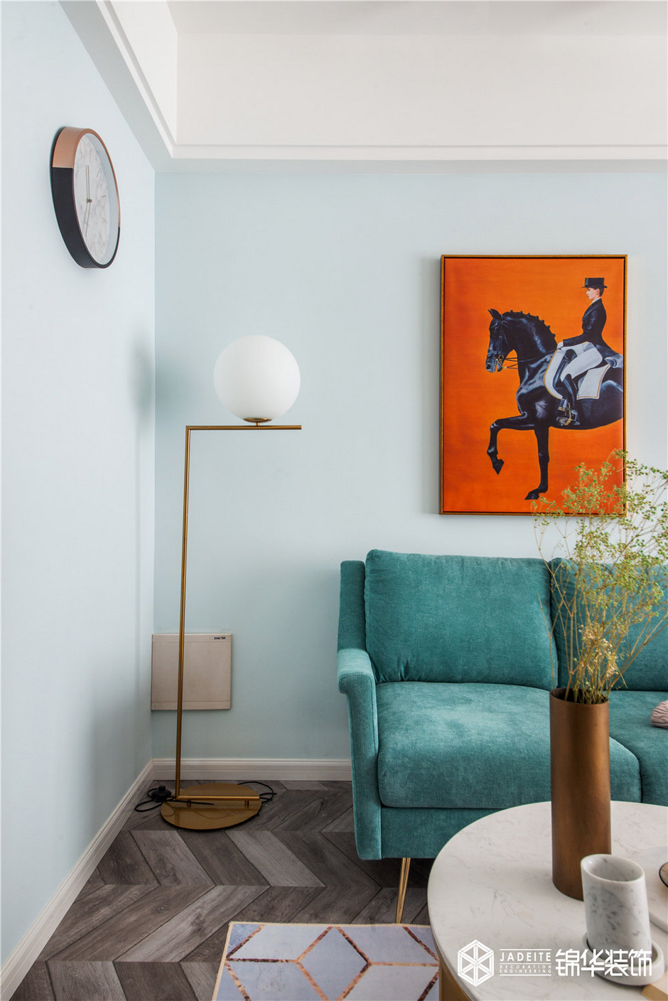 ▲飽和度極高的綠色沙發和溫暖熱情的紅色裝飾畫,形成大膽的撞色,成為整個空間的亮點!
