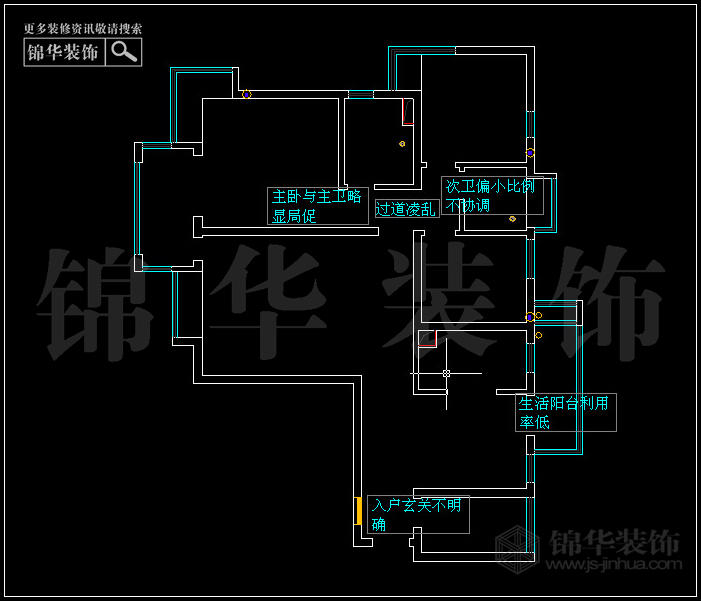 (1)主次臥次衛過道凌亂,整體性不高